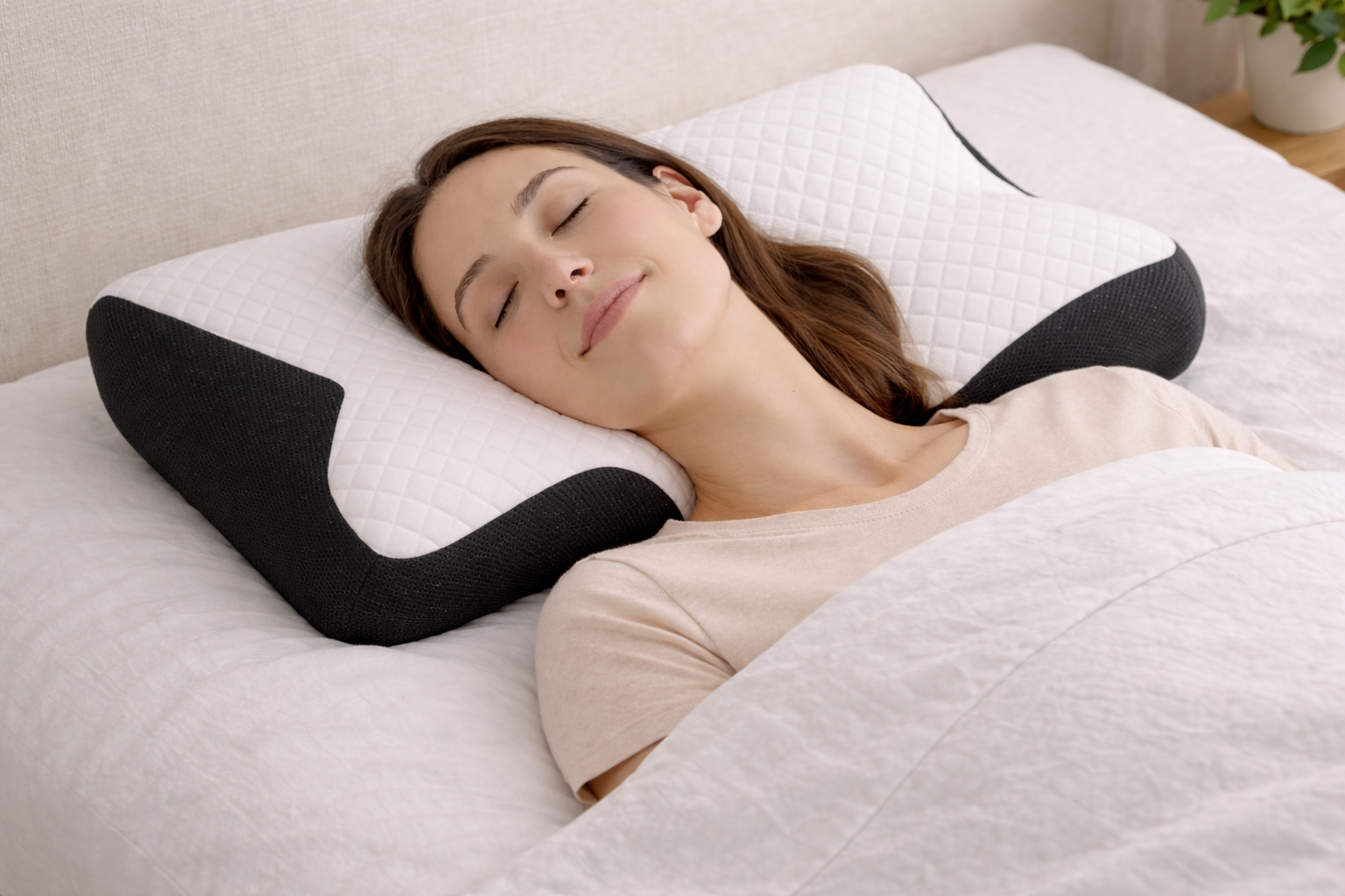 Ergonomic pillow designed to relieve neck pain and improve sleep quality.